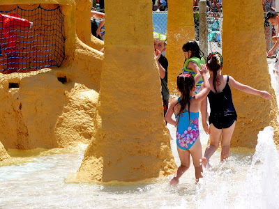 Friday we did Sesame. Girlies had so much fun! Abrie was in character chasing mode again! What's funny is that this was Faith's first time to ever actually meet the characters at Sesame (and Hershey) also. She's only ever liked the characters at Disney! Water slides were a hit this year with all 3 of them, and we did mainly water stuff all day.